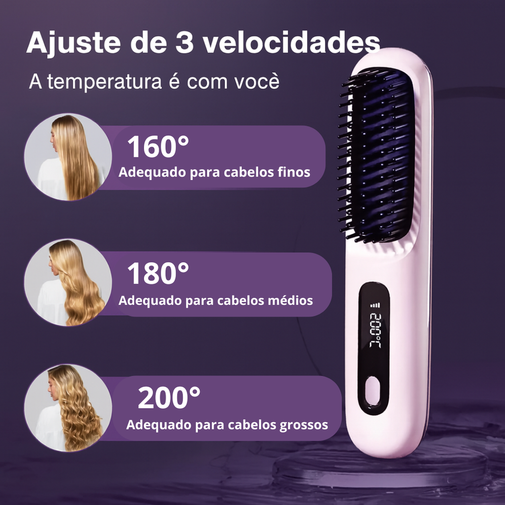 Imagine ter um cabelo liso, alinhado, sem frizz e com brilho, em qualquer lugar, em poucos minutos, sem precisar de tomada e sem danificar os fios.