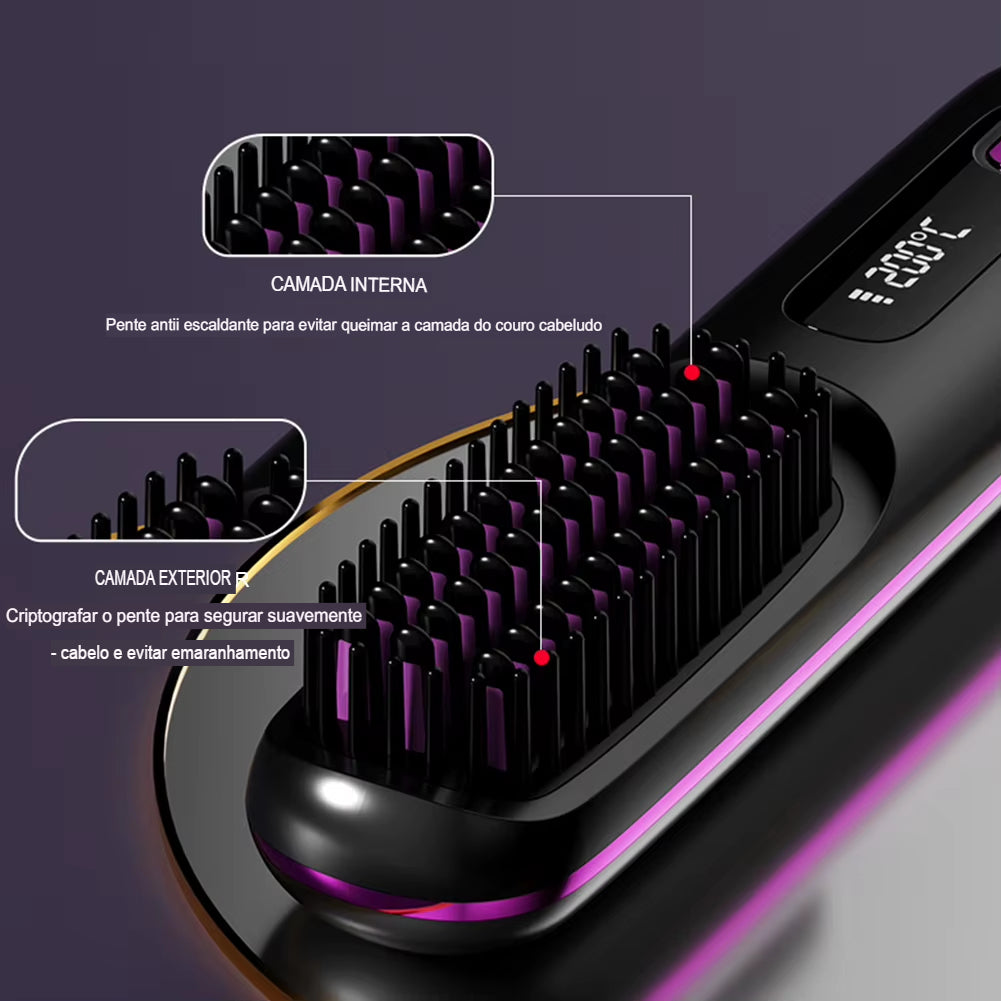 Com a Escova Alisadora Profissional Sem Fio, isso vira parte do seu dia a dia — prática, rápida e segura.